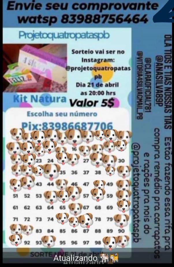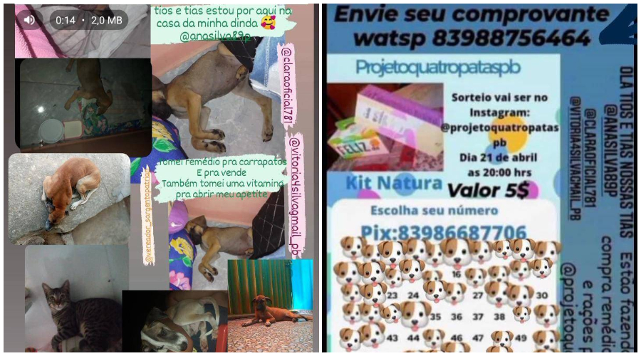 “Estamos vendendo essas rifas em prol de arrecadar dinheiro para comprar remédio para carrapato dos cães que já sofrem com abandono e pra completar sofrem também com os carrapatos. Não posso ficar de braços cruzados vendo essa situação”, a protetora de animais.