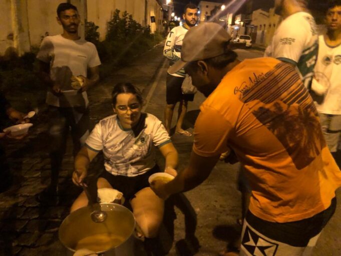“Boa noite, torcida organizada Comando Alviverde realizou na noite deste domingo uma ação social um sopão solidário visando ajudar as famílias carentes de nossa cidade, estamos pedindo apoio também de todos que possa nos ajudar nas próximas ações que vamos fazer em patos”, publicou um dos representantes.