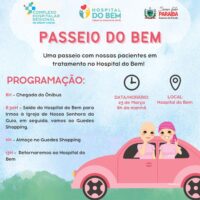A rotina de exames, quimioterapia e consultas para 20 pacientes que fazem tratamento contra o câncer no Hospital do Bem, que integra o Complexo Hospitalar Regional Deputado Janduhy Carneiro de Patos, nesta quarta-feira (23), vai ser diferente e bem mais agradável. Isto porque, elas farão um ‘Passeio do Bem’, com direito a parada na Igreja Nossa Senhora da Guia e depois desfrutarão de um almoço em um dos restaurantes do Shopping Guedes, preparado, especialmente, para homenageá-las. Essa ação faz parte das comemorações do mês da mulher. A saída do hospital está prevista para as 8h30 e o almoço no shopping, por volta das 11h.