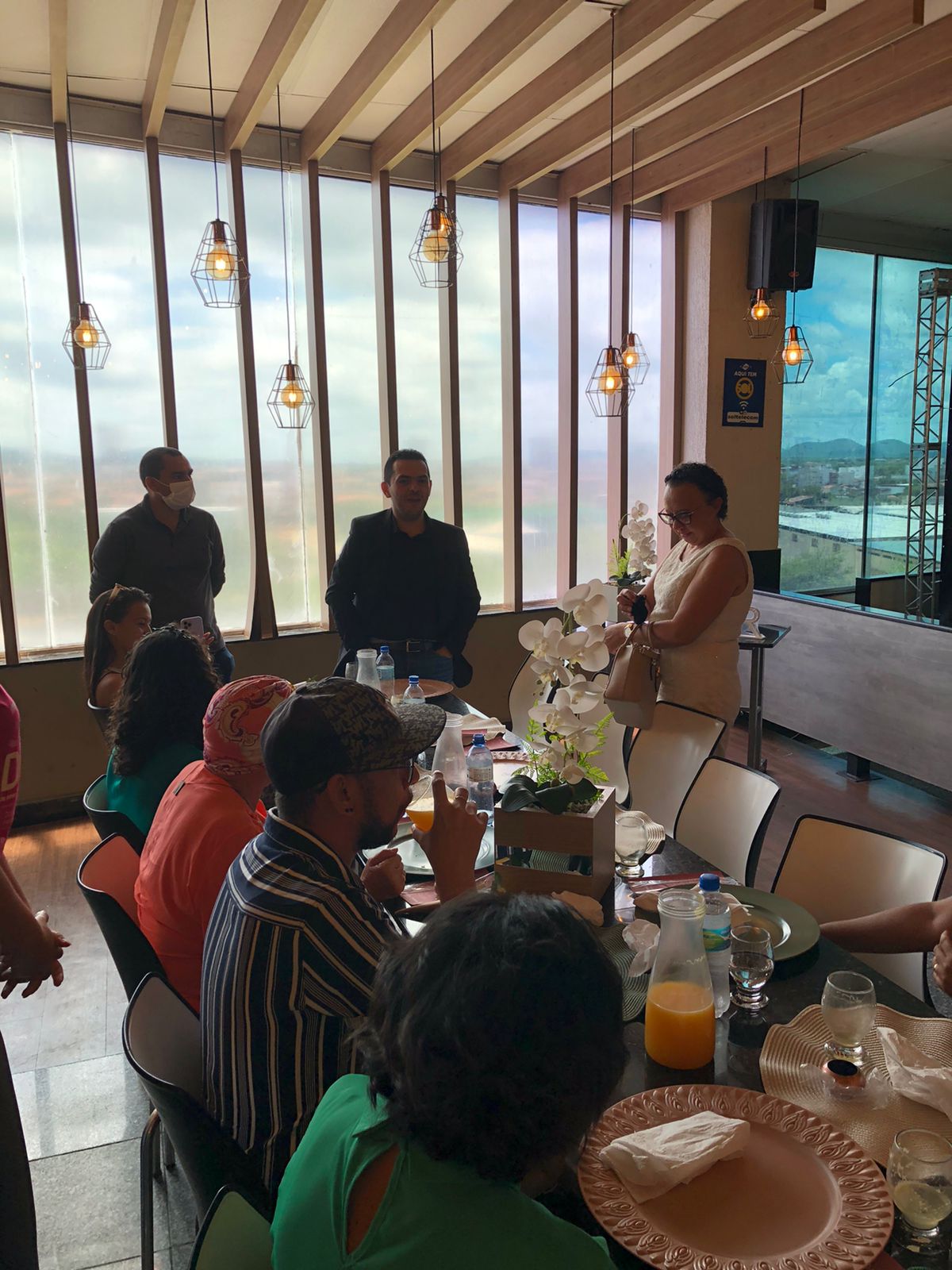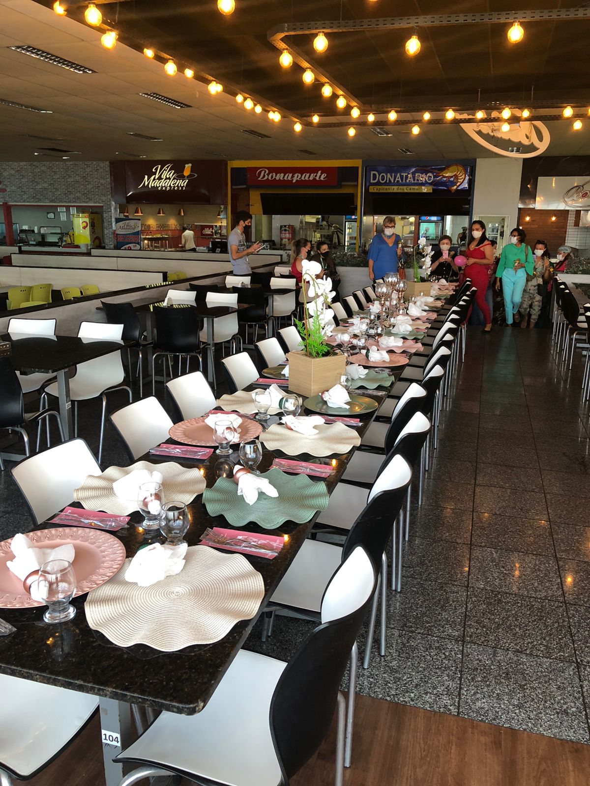 Na segunda parte do passeio, elas foram recebidas no Shopping Guedes de forma muito afetuosa, pela Gerente de Marketing do Grupo Guedes, Tereza Vitória, e pela Supervisora de Vendas, Elemária Lacerda, que tinham preparado um ambiente super bonito, com uma mesa bem caprichada e um cardápio delicioso, para o almoço oferecido pelo Shopping. Lá, além da confraternização, nossas convidadas participaram de sorteio de brindes, degustaram um delicioso menu e festejaram a graça e beleza de serem mulheres.