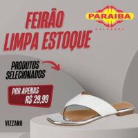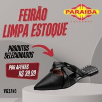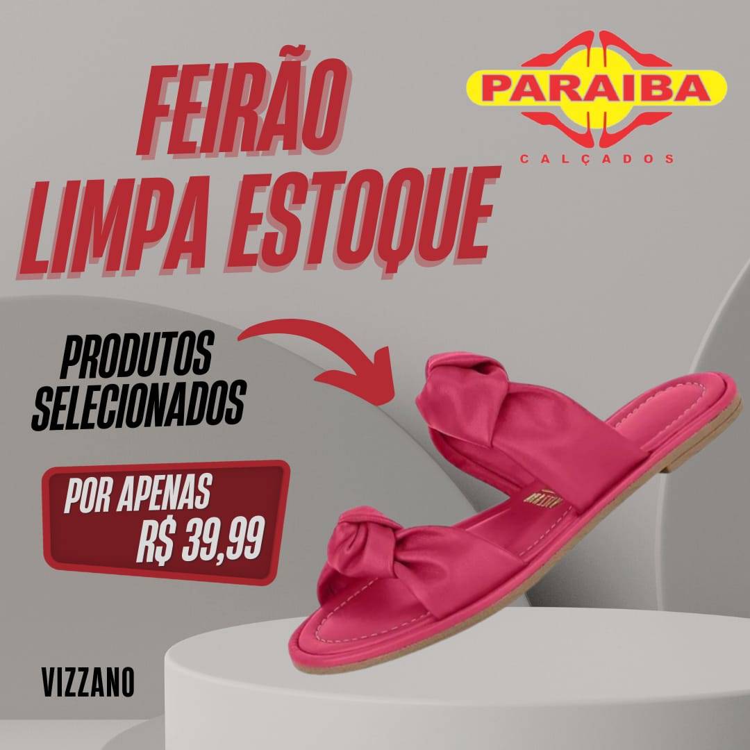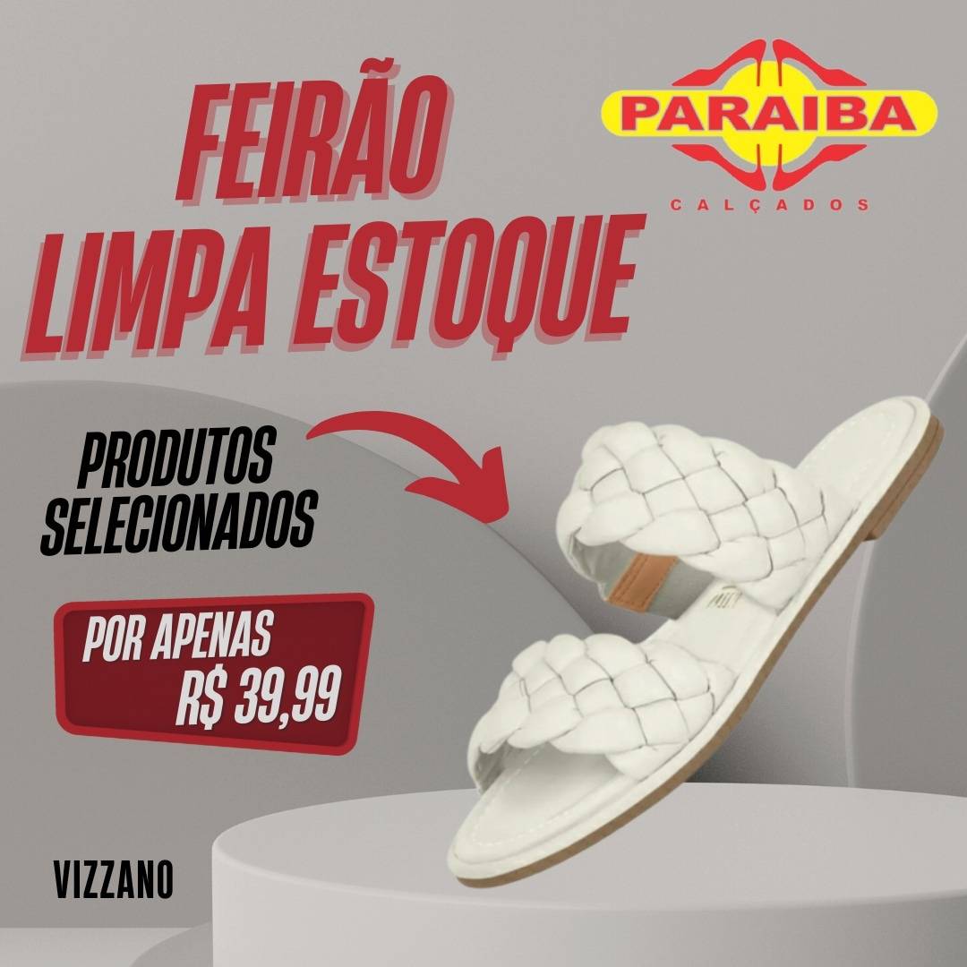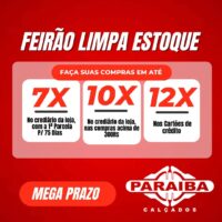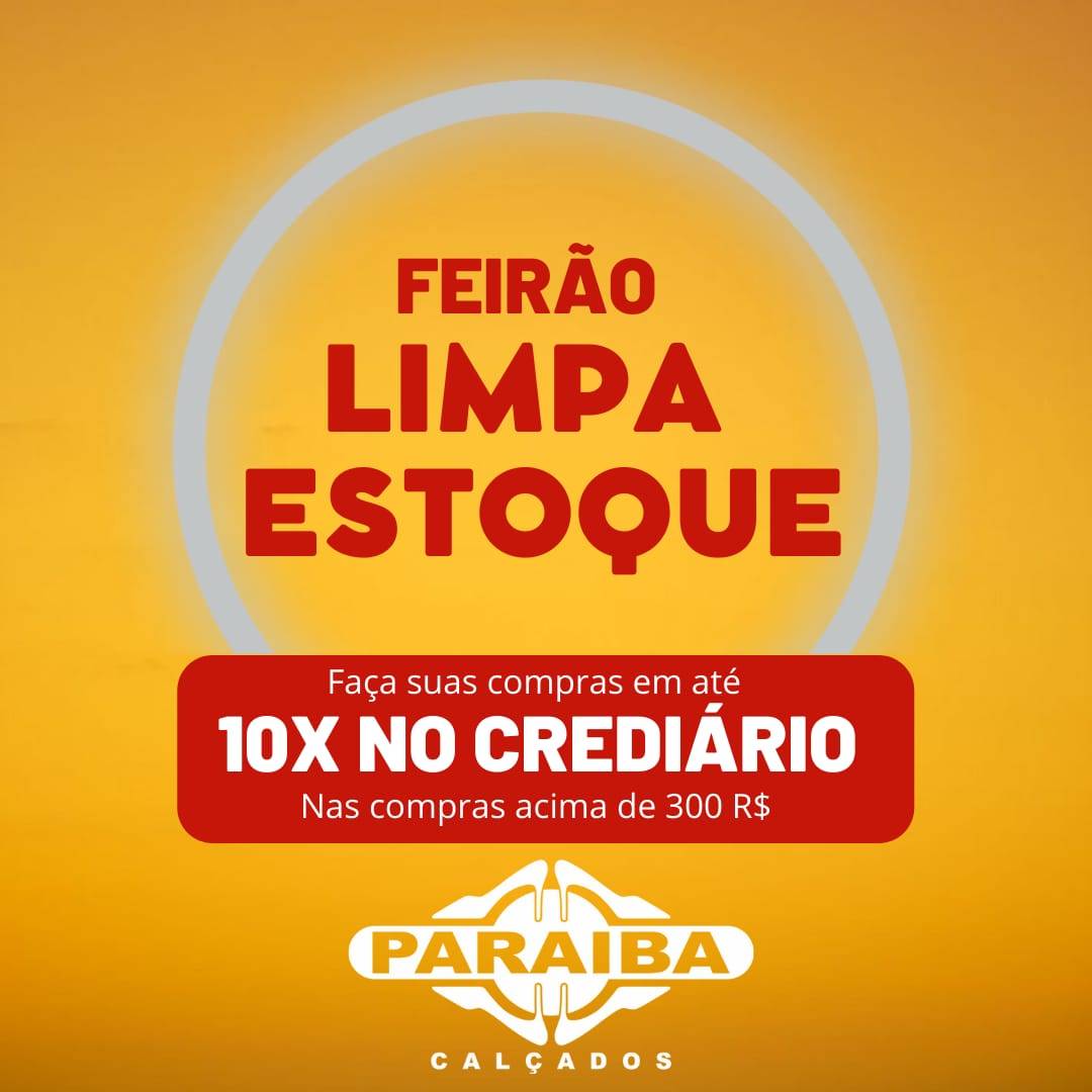 A Paraíba Calçados, na Rua Pedro Firmino, no centro de Patos, está realizando a primeira promoção do ano: Operação Limpa Estoque. É pra liquidar mesmo! Calçados a partir de R$ 10,99 e com super prazo no crediário com a primeira para o mês de junho ou se preferir no cartões de crédito até 12x (Mastercard, Visa, Hipercard e Elo). E atenção! Nas compras acima de R$ 300,00, divida em 10x no crediário com a primeira para 30 dias.