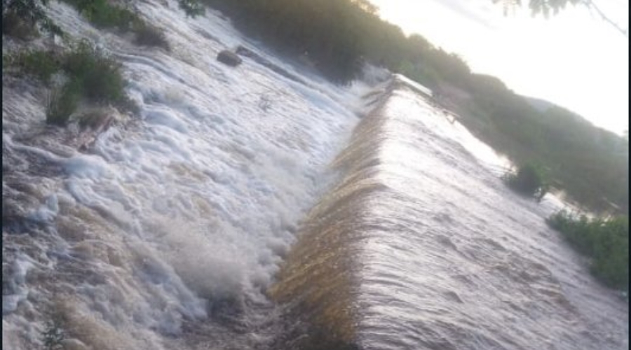 Este açude leva água para outros que podem também sangrar caso continue as chuvas.