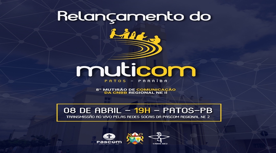 A Diocese de Patos, através da equipe executiva da Pastoral da Comunicação (Pascom), convida os profissionais da imprensa, em especial os membros da Associação de Imprensa do Sertão Paraibano (AISP), para participar da coletiva de relançamento do 8° Mutirão de Comunicação (Muticom), do Regional Nordeste 2 da CNBB.