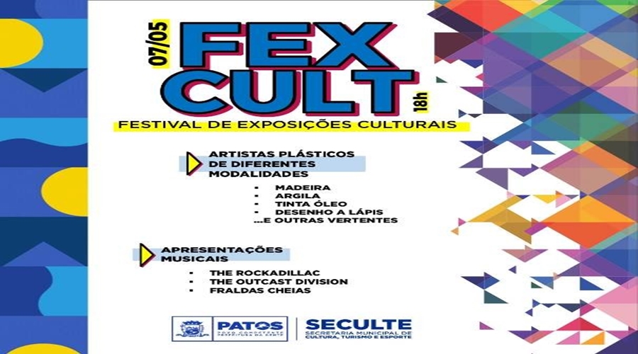 A Concha Acústica Nilson Batista, localizada na praça Edvaldo Mota, no centro de Patos, será palco do Fexcult – Festival de Exposições Culturais. O evento acontecerá neste sábado, dia 07 de maio, a partir das 18h, e terá apoio da Prefeitura de Patos, por meio da Secretaria de Cultura.