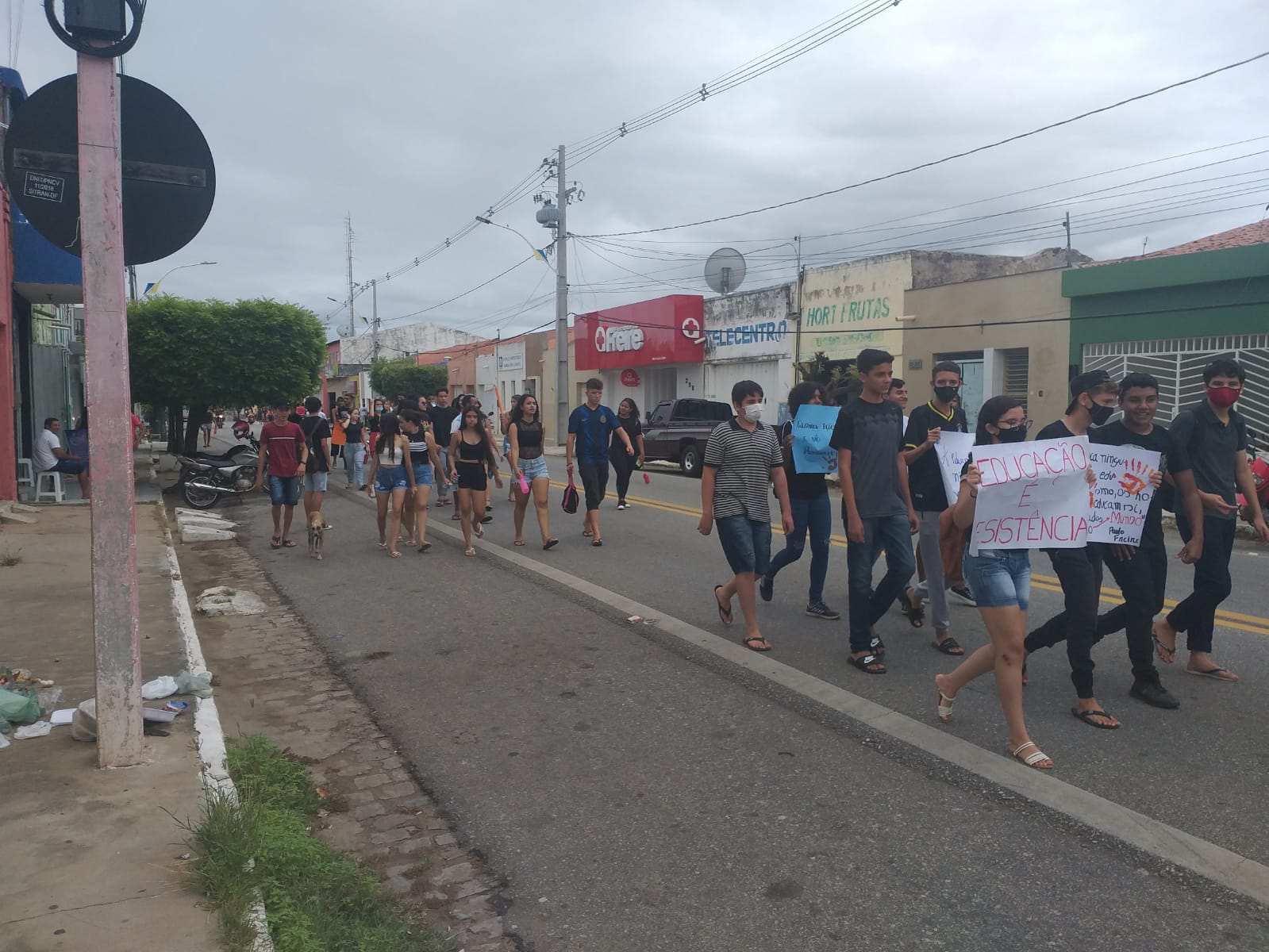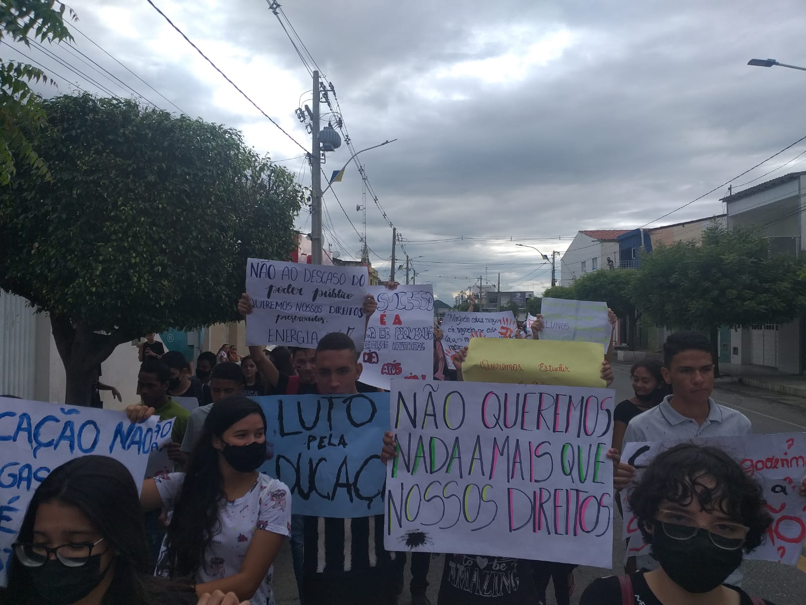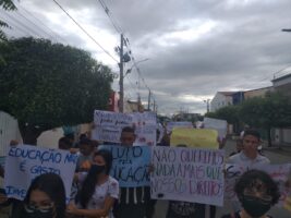 Os alunos percorreram as principais ruas da cidade e se concentraram na Praça Central. Na ocasião, o professor Gilson Remígio dos Santos falou do descaso do Governo Estadual com a educação e pediu providências urgentes. “Os alunos estão se transferindo para outras escolas por causa da falta de energia. Uma escola com dez salas de aula se encontra com quatro turmas: o 9° ano do ensino fundamental e três turmas do ensino médio”, disse Gilson.