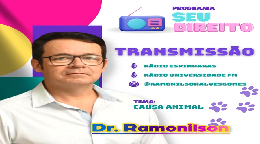 Neste domingo, dia 15 de maio, o programa “Seu Direito” com Dr. Ramonilson Alves irá receber especialistas e representantes de entidades não governamentais da cidade de Patos com o intuito de debater a importância da proteção animal em toda a região.