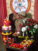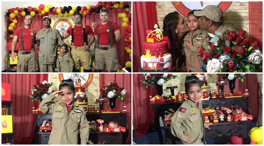 Vestida a caráter, com uniforme, Anne Karolynne, assim como o pai Sargento Marinho, recebeu uma equipe de Bombeiros Militares, com quem bateu os parabéns. Para a mãe, Elma Dellion, a ação foi um sonho realizado.