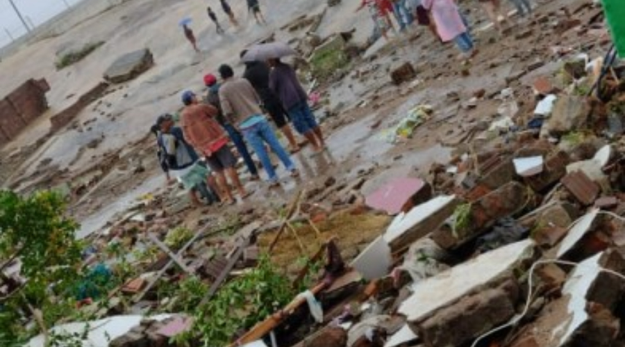 Um reservatório que fica na cidade de Pocinhos se rompeu e várias casas foram destruídas na madrugada desta quarta-feira (25) na Paraíba.