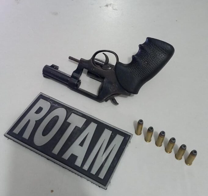 Ao fazer a abordagem, Marcos Antônio se encontrava com 01 (um) revólver calibre .38SPL, com 6 munições intactas na cintura.