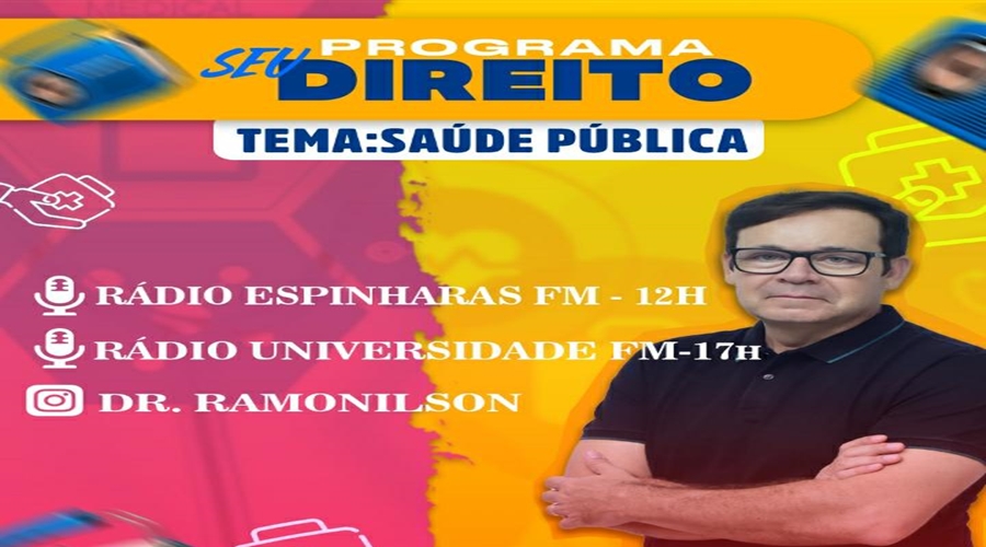 Neste domingo, dia 29 de maio, o programa “Seu Direito” com Dr. Ramonilson Alves irá receber especialistas com o intuito de debater a Saúde Pública no Sertão.