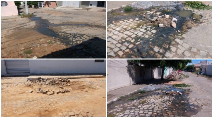Moradores das ruas Azenriel de Brito Siqueira, João Leite e Rosa Figueiredo, no Bairro da Maternidade, na zona oeste de Patos, estão reclamando de esgoto a céu aberto e pedras de calçamento, que estão se desprendendo do solo no cruzamento dos três logradouro, próximo à Palhoça do Nezinho.