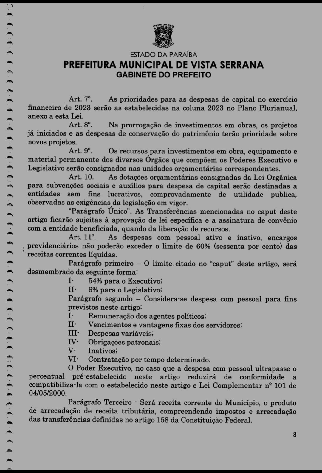 O gestor de Vista Serrana recebe atualmente o salário de R$ 16.000,00. Caso a proposta da LDO seja aprovada, o seu salário será de R$ 24.640,00, o terceiro maior salário de um gestor municipal em todo o estado, a ser pago em 2023. O prefeito Sergio de Levi tem a maioria dos vereadores na sua base de apoio no Poder Legislativo: dos 9, 8 lhe dão sustentação na câmara. “Não podemos esquecer que vista Serrana fica no Sertão do Estado e conta com uma população em torno de 5 mil habitantes. A cidade mais uma vez vai se tornar o centro de muito falatório”, disse Evaldo Medeiros.