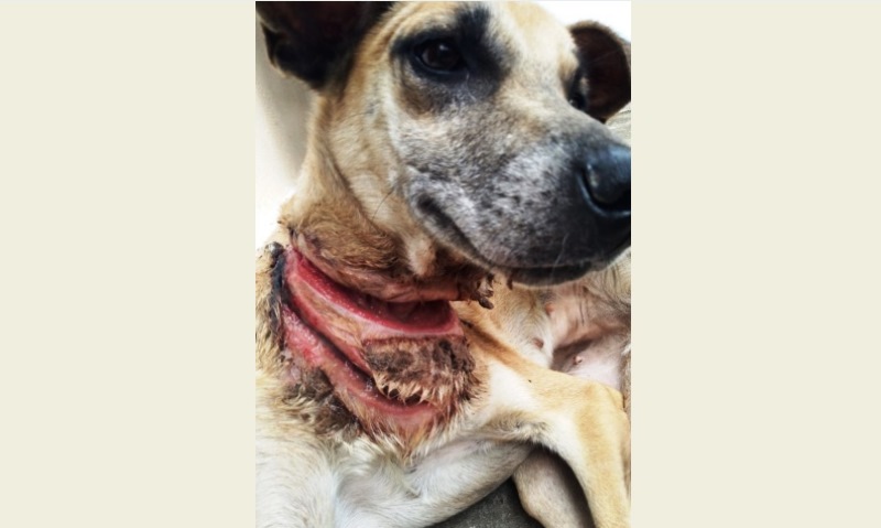 De acordo com relatos, o cão aparece na localidade com o ferimento no pescoço. O casal se compadeceu da situação do animal, colocou água, comida e está disposto a adotar o cachorro após tratamento, pois a família não tem condições de custear o tratamento e nem sabe lidar com a situação.