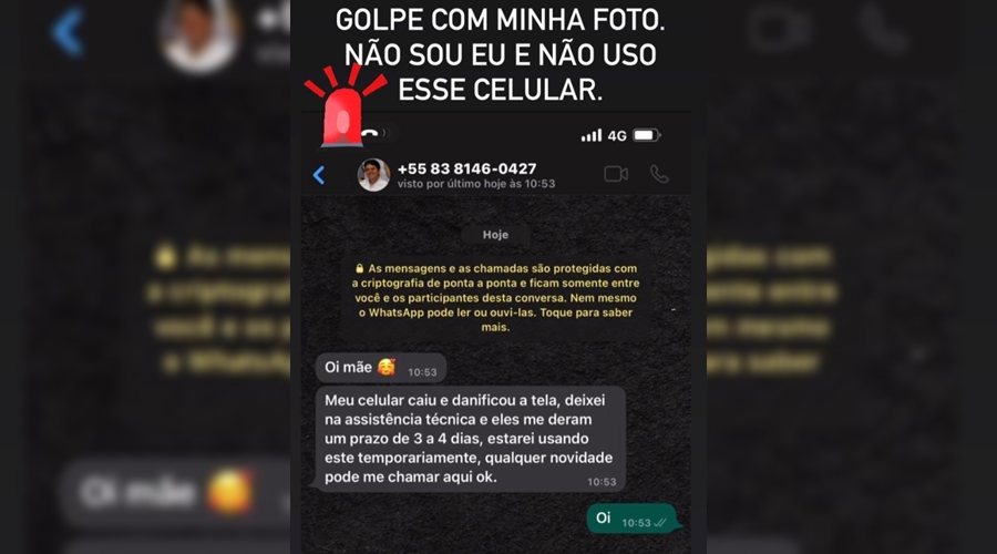 O número usado pelo criminoso é (83) 98146-0427. O médico destaca que qualquer contato por favor procurar a delegacia para procedimentos cabíveis.
