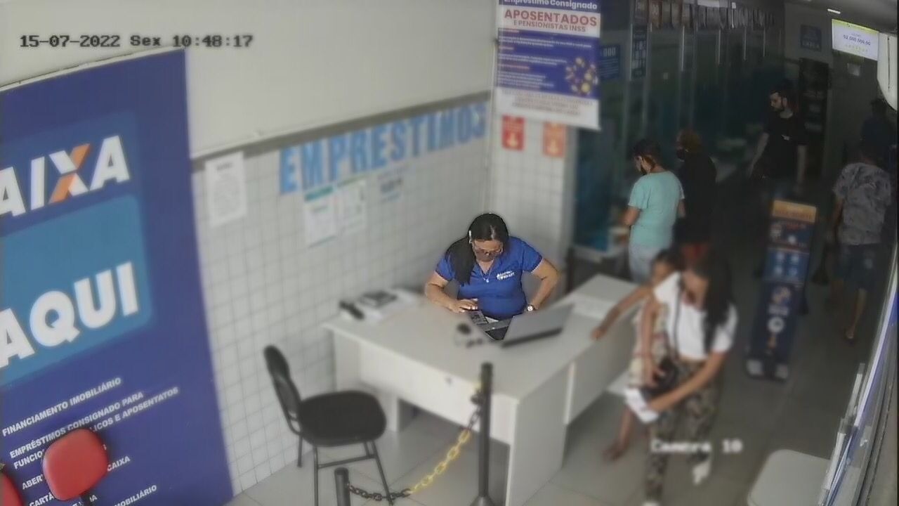Wellington conta que ao tomar conhecimento da situação foi até a lotérica onde foi informado que o saque aconteceu e o dono do estabelecimento cedeu as imagens das câmeras de segurança que mostram a pessoa, uma mulher jovem de camisa branca, óculos escuro e que estava com uma criança, autora do saque com o cartão da dona Maria de Fátima.