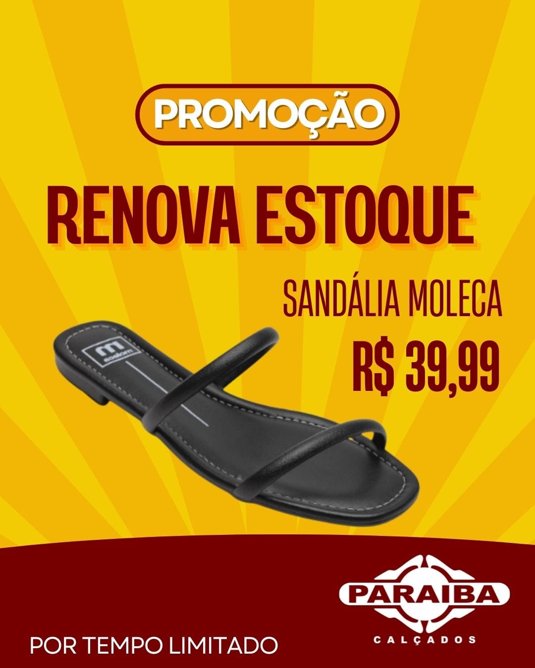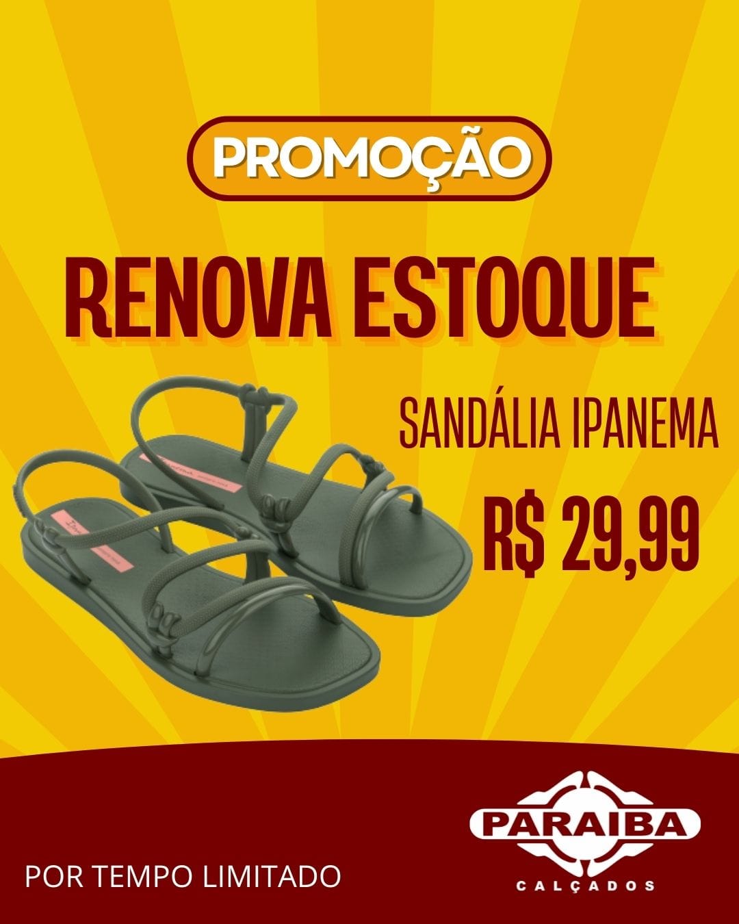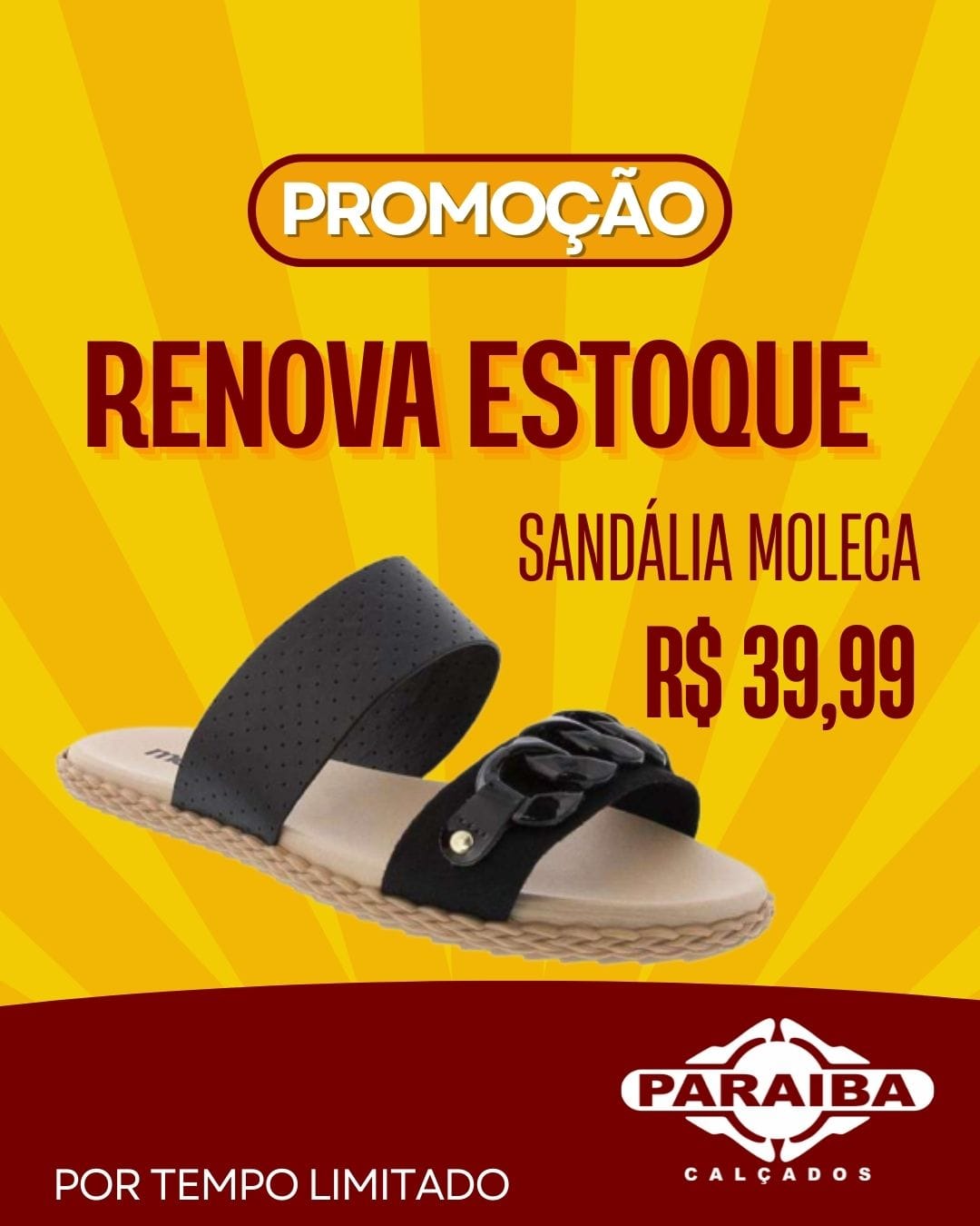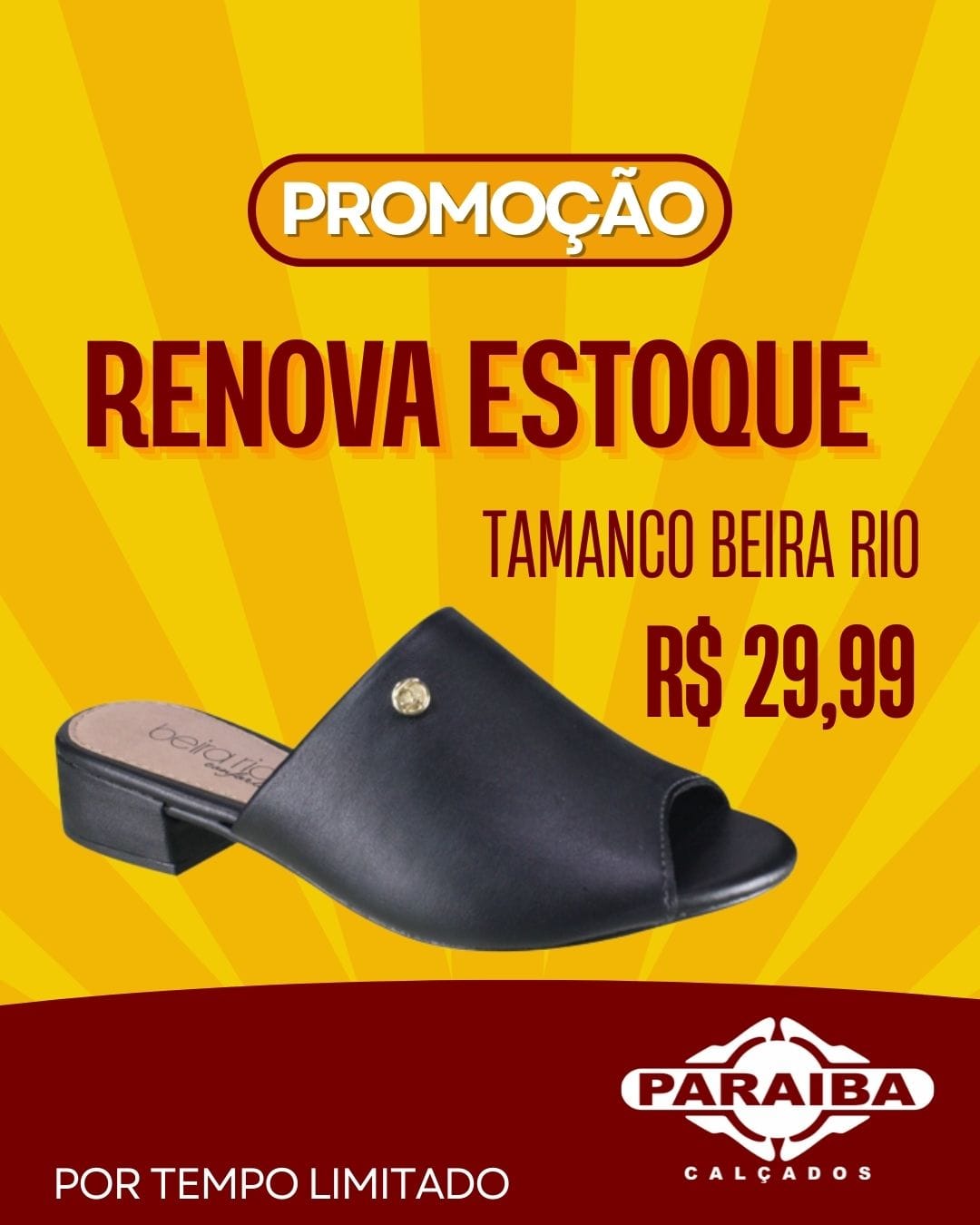 Atenção, Patos! A Paraíba Calçados, na Rua Pedro Firmino, no centro da cidade, está realizando a promoção Renova Estoque. É pra liquidar mesmo! Calçados a partir de R$ 19,99 de várias marcas e modelos. Também temos cintos, bolsas, carteiras e outros itens. Venha conferir!