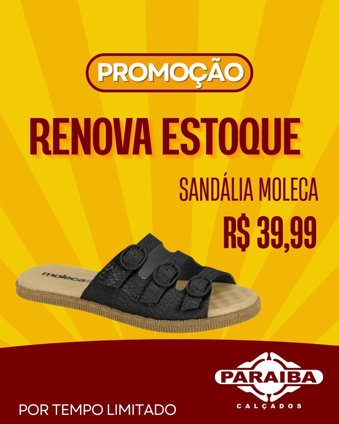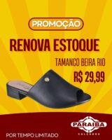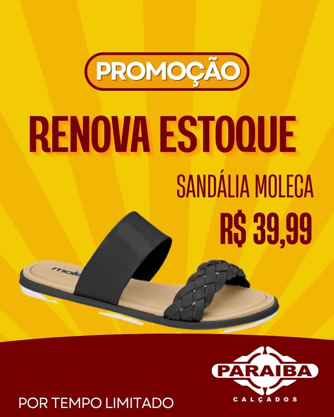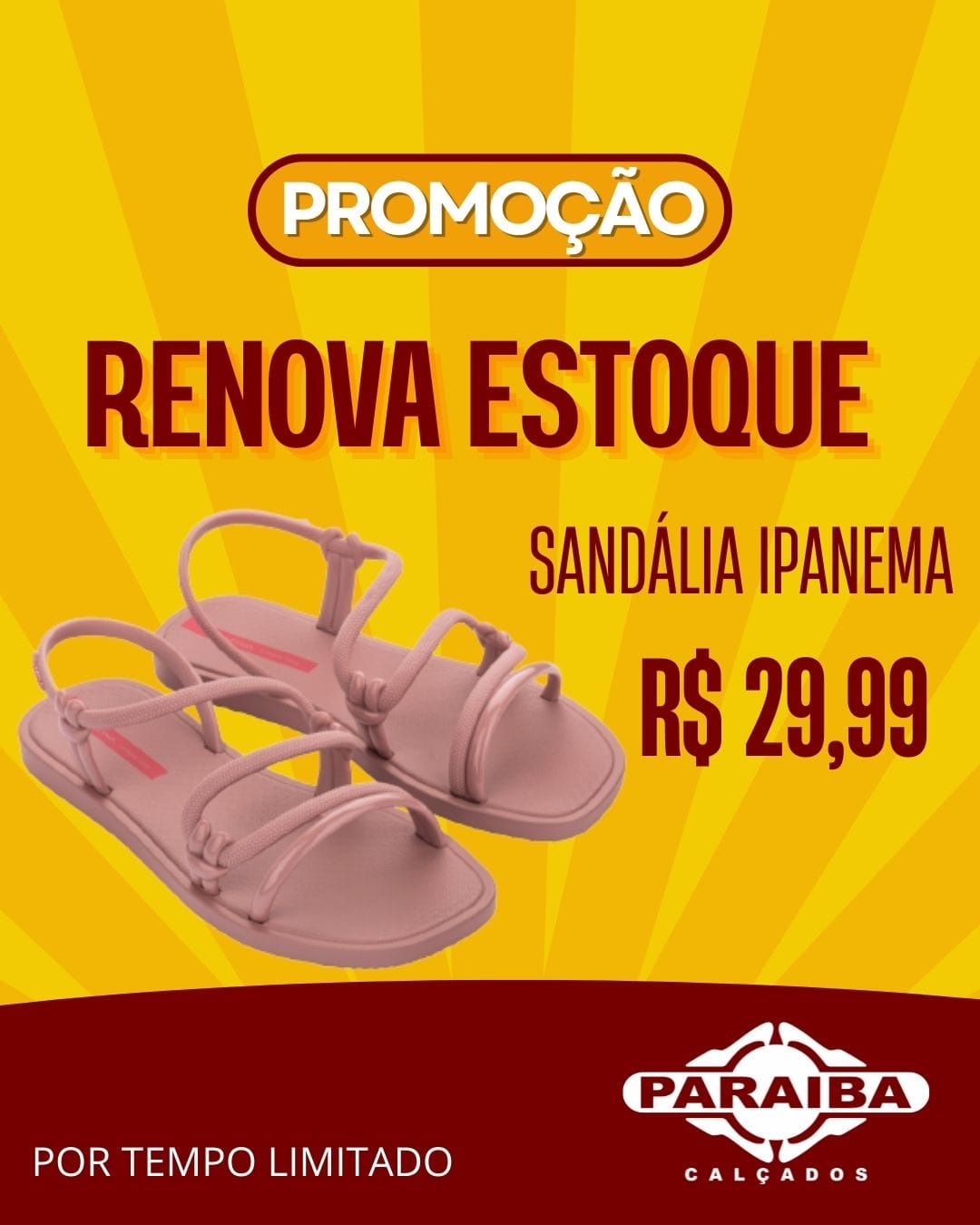 Atenção, Patos! A Paraíba Calçados, na Rua Pedro Firmino, no centro da cidade, está realizando a promoção Renova Estoque. É pra liquidar mesmo! Calçados a partir de R$ 19,99 de várias marcas e modelos. Também temos cintos, bolsas, carteiras e outros itens. Venha conferir!