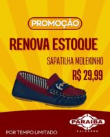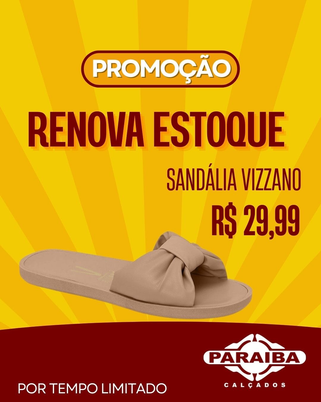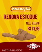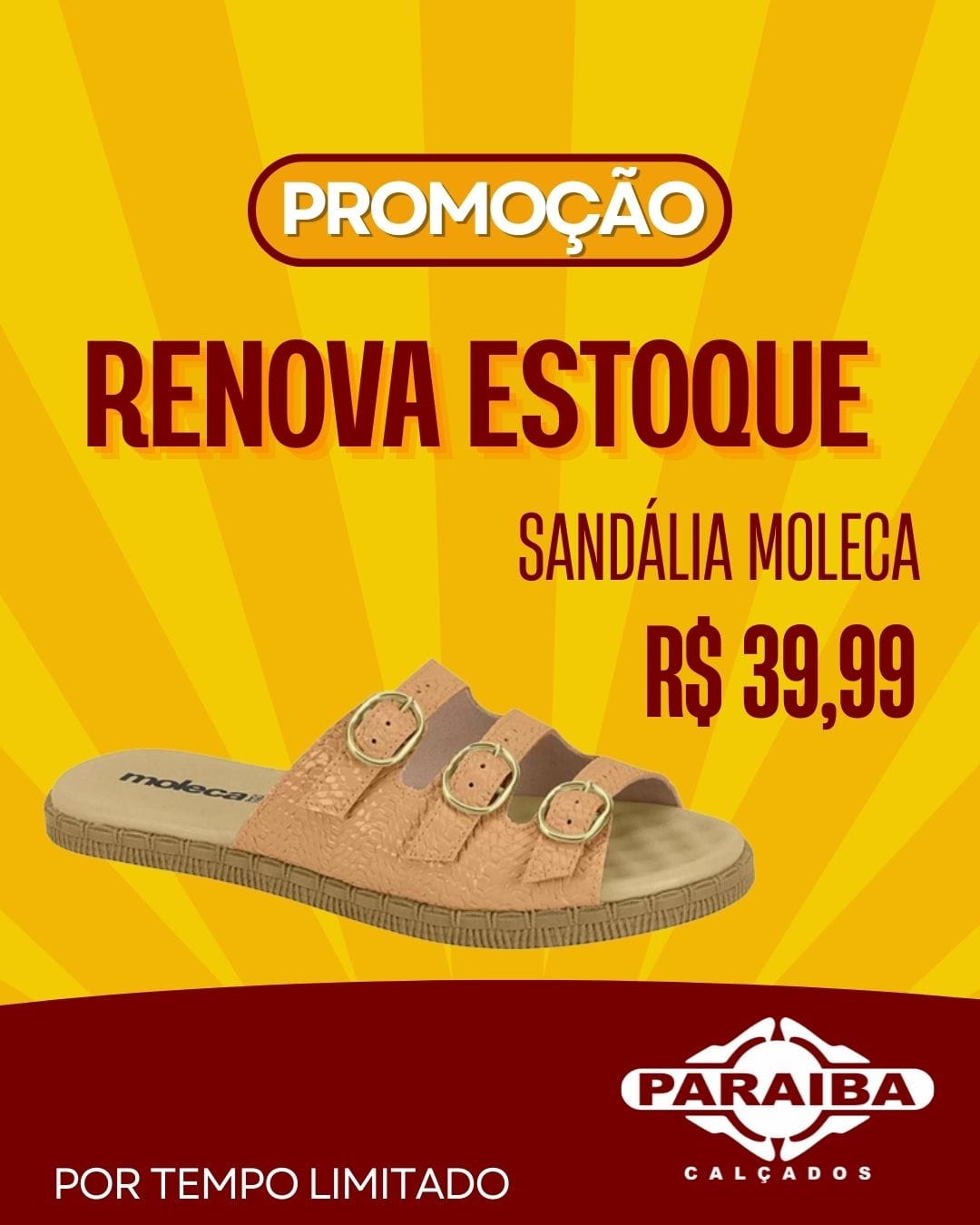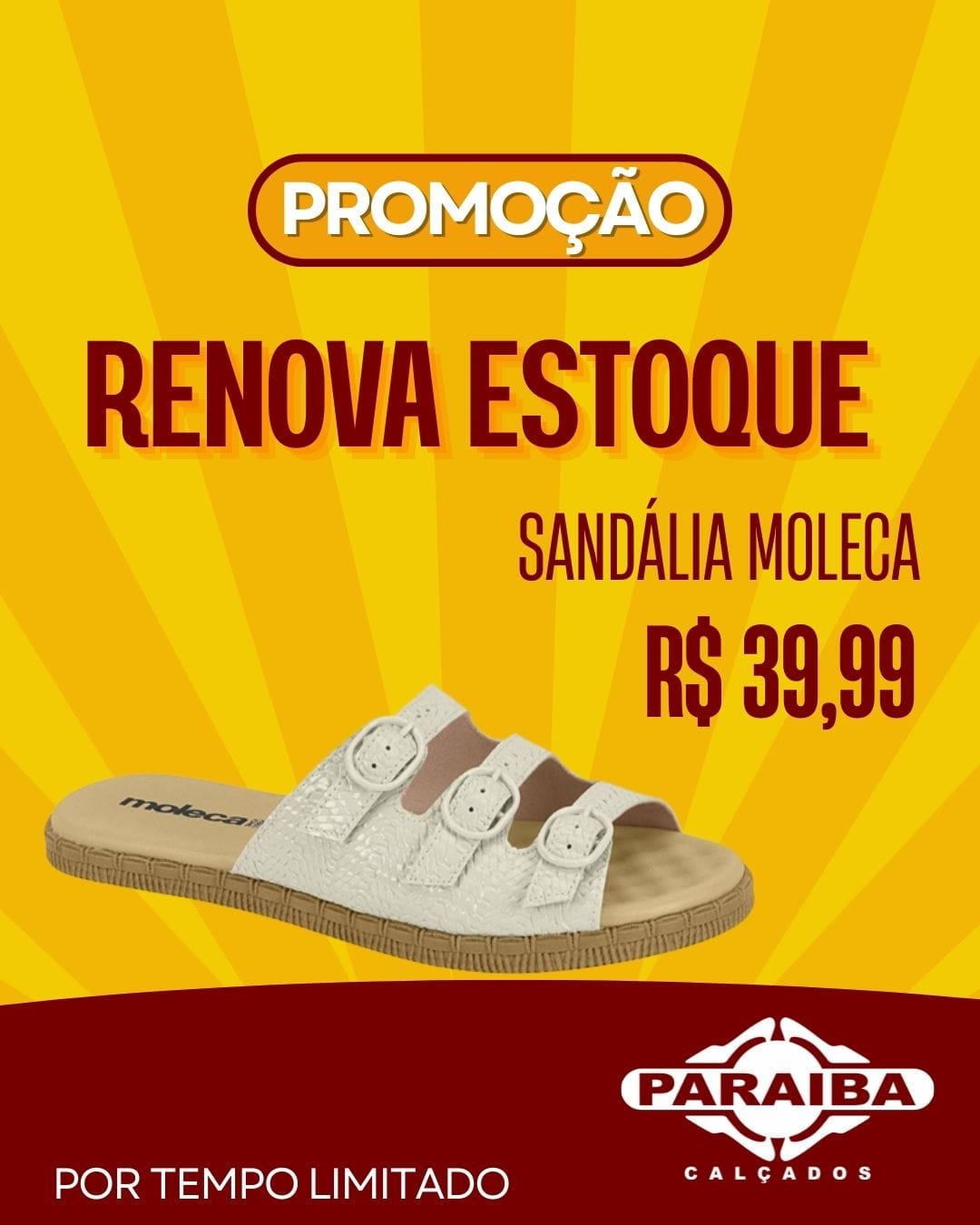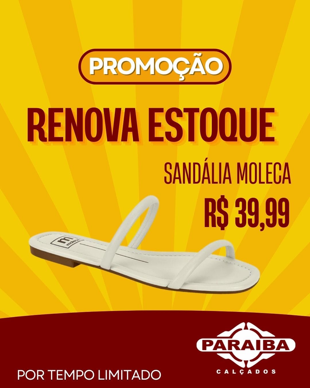 Atenção, Patos! A Paraíba Calçados, na Rua Pedro Firmino, no centro da cidade, está realizando a promoção Renova Estoque. É pra liquidar mesmo! Calçados a partir de R$ 19,99 de várias marcas e modelos. Também temos cintos, bolsas, carteiras e outros itens. Venha conferir!