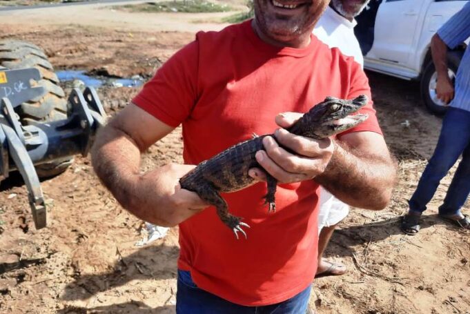 No início da tarde desta quarta-feira, dia 20, por volta das 14h, trabalhadores que realizam serviços de terraplanagem às margens da BR-361, nas proximidades da praça do bairro Bivar Olinto, na zona oeste de Patos, tiveram uma grande surpresa ao se depararem com um filhote de jacaré.