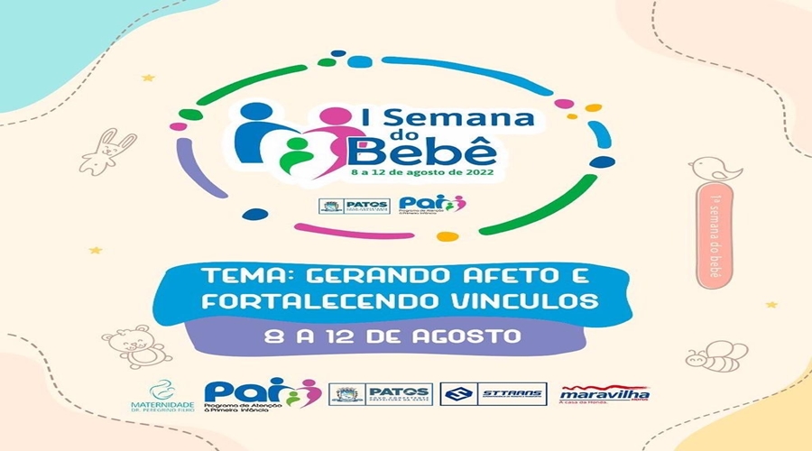 A Prefeitura de Patos, por meio do Programa de Atenção à Primeira Infância-PAI realizará durante o período de 8 a 12 de agosto, a I Semana do Bebê – Gerando Afeto e Fortalecendo Vínculos.