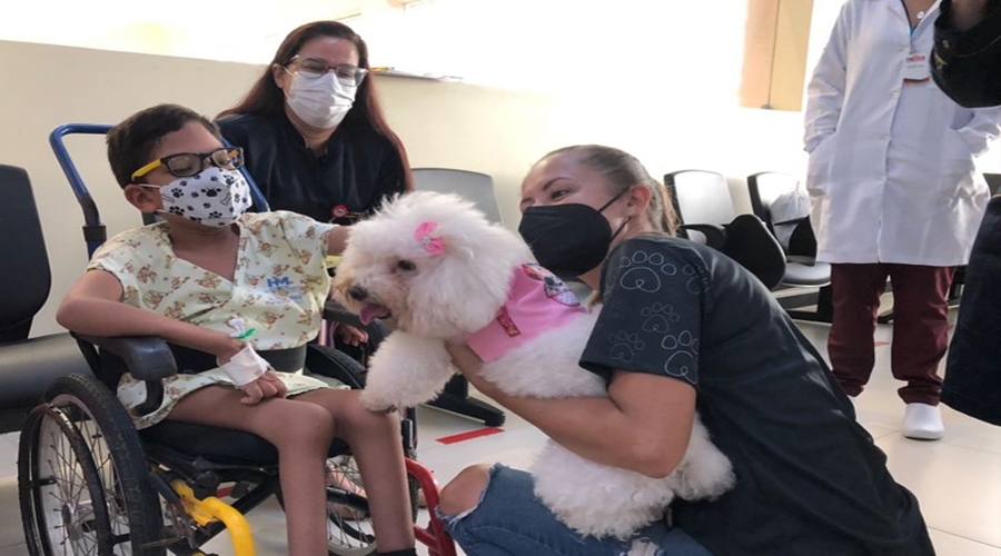 A psicopedagoga da enfermaria e UTI pediátrica, Janielly Fernandes, estava no ambulatório acompanhando os pacientes pediátricos e relatou como essa terapia traz benefícios às crianças que estão internadas na unidade hospitalar. “O projeto é muito interessante, porque ele vem para dar essa vontade de se recuperar e voltar para casa aos pacientes e essa empolgação das crianças ajuda muito na recuperação delas. É uma terapia, elas abraçam, dão carinho, tem algumas crianças que gostam muito de animais, então essa expectativa que elas criam e esse aconchego que é proporcionado é importante para os pacientes”, pontuou a psicopedagoga que também aproveitou para dar e receber um pouco de carinho dos pets.