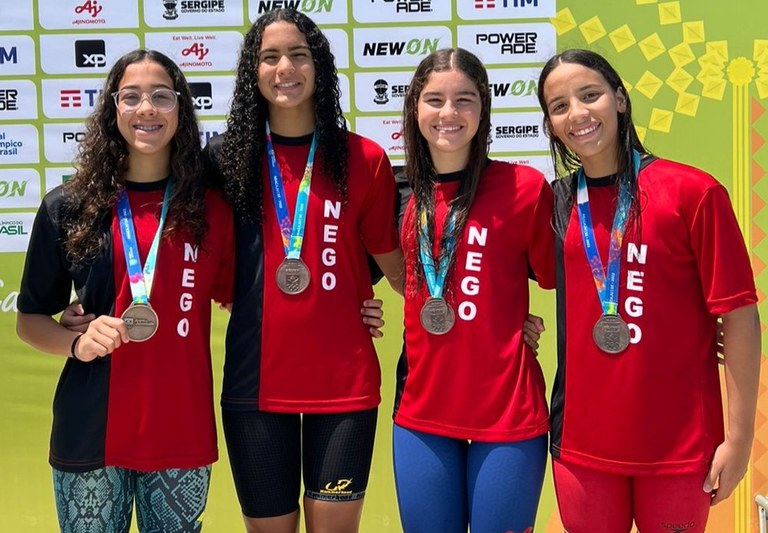 Mais um bronze foi conquistado pela Paraíba com a equipe feminina no revezamento 4 por 200 livre, que é composta por: Maria Eloíse, Maria Luiza, Isabela Garcia e Estephany Camilly. “Sem palavras para tanta alegria neste primeiro dia de competições em Aracaju, com cinco medalhas logo de cara na natação. Isso é um bom sinal porque o evento está só começando e nunca na história, no início desses Jogos, nosso estado ganhou tanta medalha”, destacou o professor José Hugo, chefe da delegação.