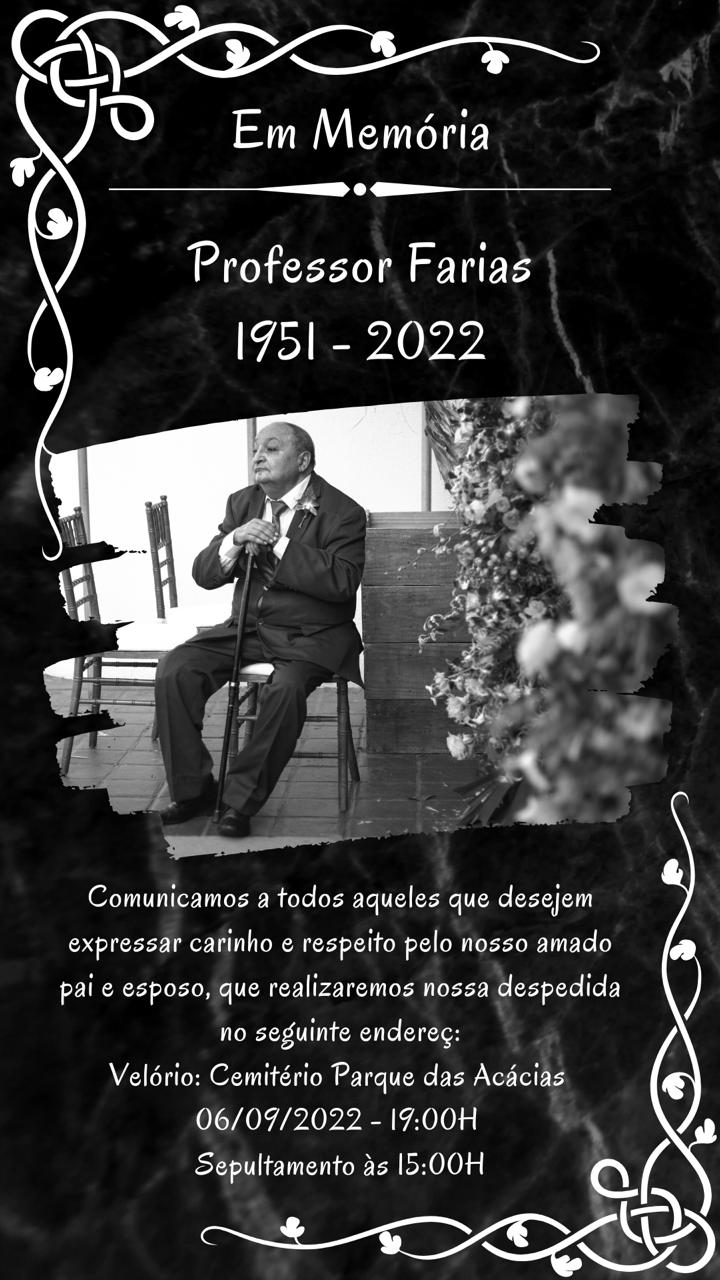 Morreu por volta das 13h desta terça-feira, 06/09, de parada cardíaca, no Hospital Santa Isabel, em João Pessoa, o professor aposentado José Farias de Sousa, de 71 anos.