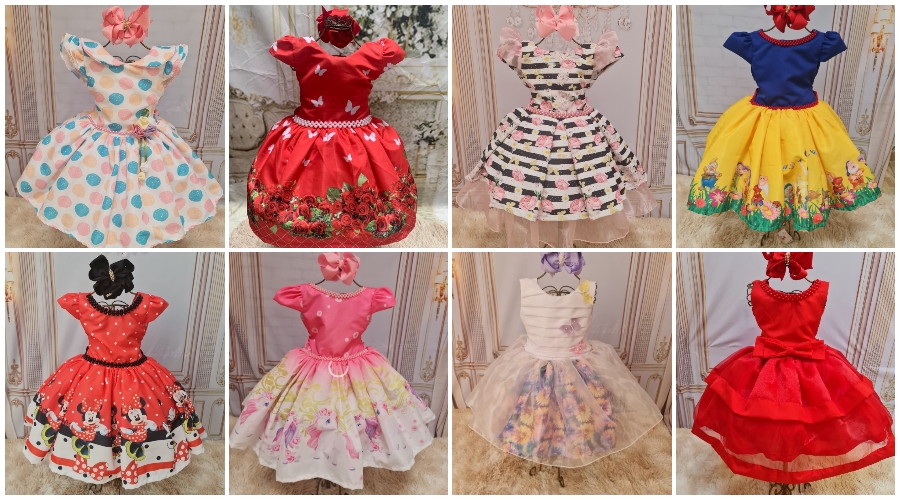 Temos vestidos para festas e eventos em geral e também temáticos para festas de aniversário. Traga sua criança e venha conferir a qualidade de nossos produtos.