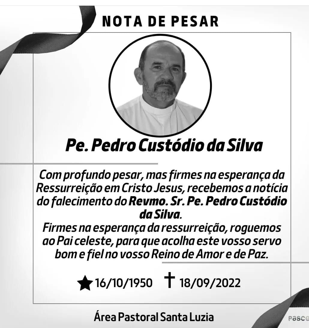 Faleceu na madrugada deste domingo, 18 de setembro, o Monsenhor Pedro Custódio da Silva, aos 71 anos.