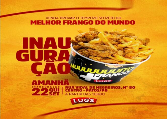 A Lug’s …com o maior balde de frango do mundo!!! A inauguração acontece às 10h desta quinta-feira, 21/09.