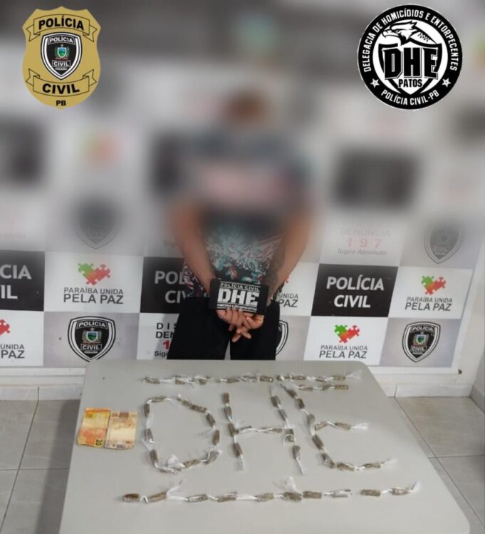 Na DHE foi lavrado um flagrante por tráfico de drogas e, em seguida, o infrator foi conduzido ao Presídio Romero Nóbrega.