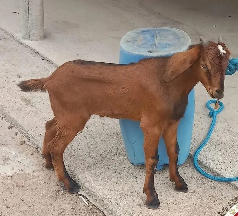 O bode foi achado no quintal de uma casa nesta segunda-feira (3). Segundo a Polícia Militar, o animal estava com a boca costurada e havia um cadeado trancado, pendurado na linha.