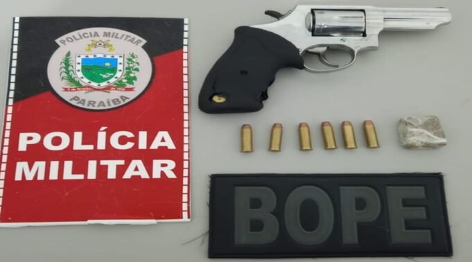 Com o indivíduo foi encontrado um revólver cal. 38 com 06 munições intactas e uma porção de uma substância análoga a maconha. O mesmo recebeu voz de prisão e foi conduzido e apresentado na DP a autoridade policial para os procedimentos legais.