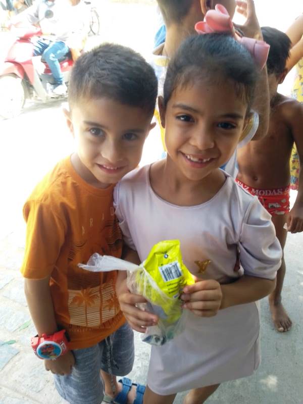 Também na tarde desta quarta-feira, a jovem Mayara Cristina, que é prima de Kaline, irá distribuir 100 sacolinhas para crianças que moram nas imediações de sua residência no Bairro Santa Clara. Desta forma, as duas primas fazem a alegria de centenas de crianças de forma singela.
