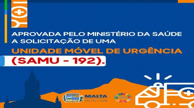 A Prefeitura de Malta, na Região Metropolitana de Patos, solicitou, através da Secretaria Municipal da Saúde, a implantação de uma base descentralizada do Serviço de Atendimento Móvel de Urgência (SAMU – 192), atrelado ao Sistema Regional de Patos. O serviço da Base irá atuar na cidade de Malta e já estava com projeto aprovado a nível estadual, agora a aprovação aconteceu por parte do Ministério da Saúde. A confirmação para recebimento da base do SAMU foi divulgada nesta sexta-feira, 14 de outubro.