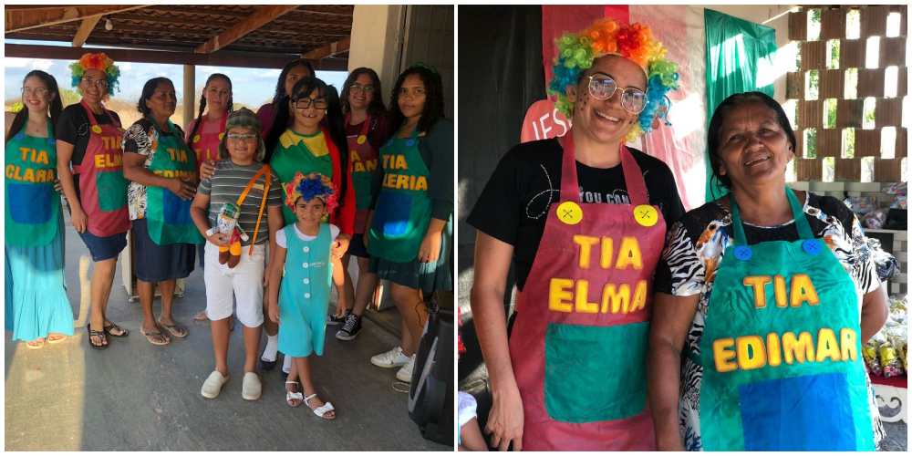 A agricultora Edimar de Sousa Monteiro e a filha Elma Dellion de Sousa Monteiro promoveram uma festa para as crianças do Assentamento Campo Comprido, município de Patos, para celebrar o Dia das Crianças.