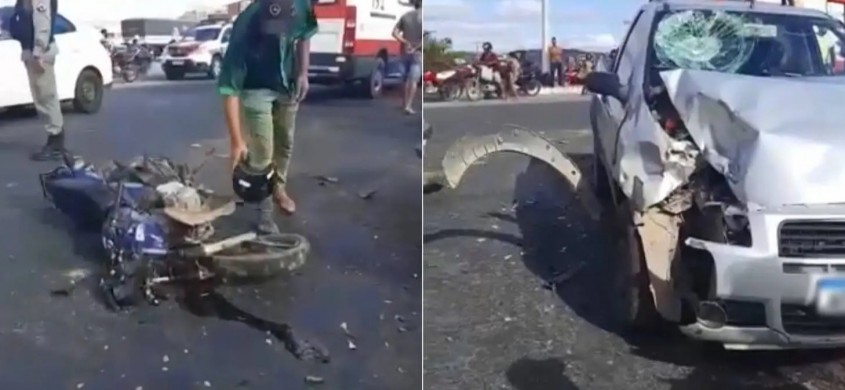 Segundo testemunhas, a moto, modelo Honda, colidiu frontalmente com um carro, modelo Fiat Strada.