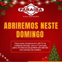A Paraíba Calçados, na Rua Pedro Firmino, no centro de Patos, está com muitas opções e excelentes preços para suas compras de Natal e Ano Novo. Temos calçados (masculinos, femininos e infantis), cintos, bolsas, carteiras e muito mais para você. Durante todo o mês de dezembro, abriremos aos domingos, das 8h às 14h, inclusive amanhã, dia 11. Venha conferir!