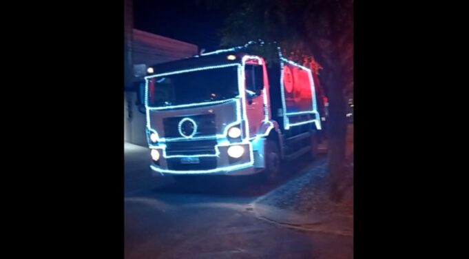 Não tem passado despercebido o caminhão da coleta do lixo nas noites pelas ruas da cidade de Patos. O veículo pertence à empresa MB Construções e Serviços LTDA, que presta serviço terceirizado para a Prefeitura de Patos, e ganhou luzes em alusão ao período natalino.