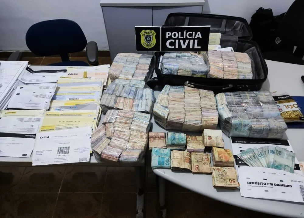 Todo o dinheiro foi encontrado dentro de uma mala. Com a suspeita, foram apreendidos também comprovantes bancários e uma caminhonete.