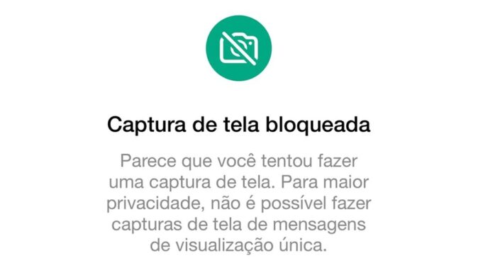 Uma imagem é gerada e salva na galeria com a seguinte mensagem: “parece que você tentou fazer uma captura de tela. Para maior privacidade, não é possível fazer capturas de tela de mensagens de visualização única” (veja na imagem acima).