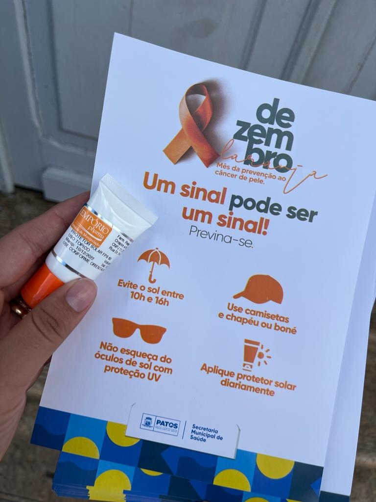 A Secretaria Municipal de Saúde de Patos, por meio da Gerência de Atenção Especializada e do Centro de Especialidades Frei Damião, realizou na manhã desta sexta-feira (16), um Pit Stop de conscientização no semáforo da Prefeitura de Patos, no Centro da cidade, com a distribuição de panfletos educativos e amostras de protetor solar cedidos pela empresa Empório Pharma. A campanha também conta com o apoio das empresas Roval, Megapharma e Pharmapele.