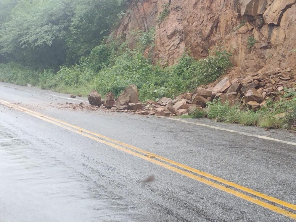 Toda vez que chove forte na cidade de Teixeira, na Região Metropolitana de Patos, as pedras da serra rolam e invadem a PB-262.