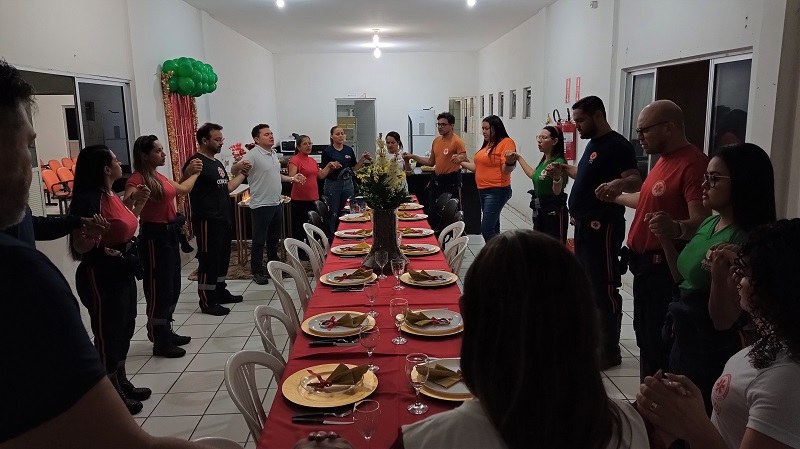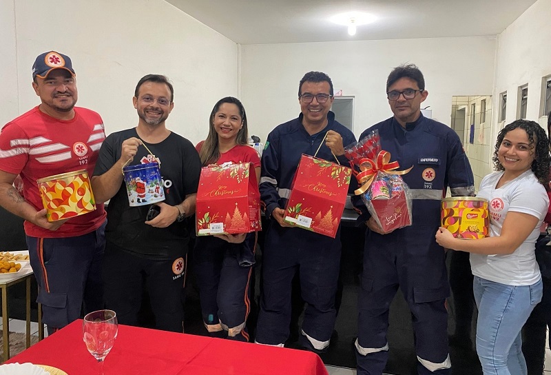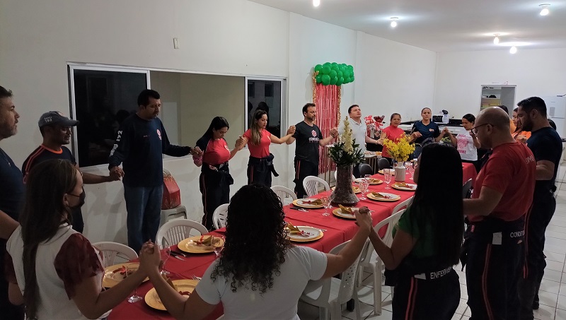 Diante da impossibilidade de celebrar com suas famílias em decorrência de estarem em plantão, os profissionais do Serviço de Atendimento Móvel de Urgência (SAMU) realizaram a ceia natalina neste sábado, dia 24 de dezembro, no refeitório da sede do órgão, no Bairro São Sebastião, em Patos.