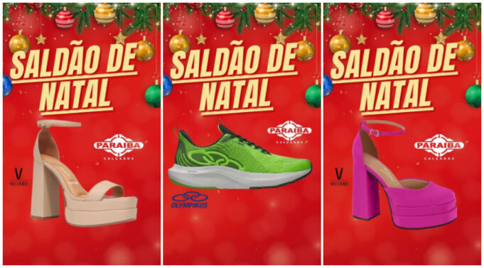 A Paraíba Calçados, na Rua Pedro Firmino, no centro de Patos, está promovendo o Saldão de Natal. Não fique parado e venha aproveitar calçados de diversas marcas e modelos (masculinos, femininos e infantis). Também temos cintos, bolsas, carteiras e muito mais para você, com excelentes preços para suas compras de fim de ano.