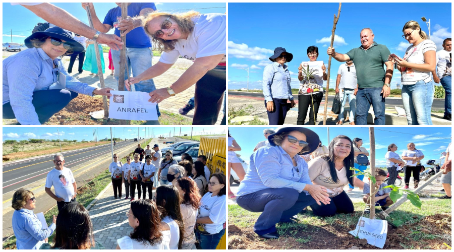 A partir de um projeto da disciplina Planejamento Paisagístico, de autoria da professora da UFCG Campus Patos, Patrícia Souto, surgiu a ideia do plantio coletivo de árvores em parceria com o grupo de mulheres Mães de Pietá, juntamente com a Secretaria Municipal de Meio Ambiente. A ação aconteceu na manhã desta quinta-feira (29), na Alça Sudeste.