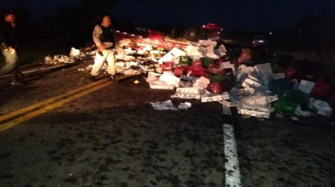 Um caminhão com verduras tombou na BR-412, entre o Distrito de Santa Luzia e o município de Serra Branca, no Cariri da Paraíba, no início da manhã desta terça-feira, 03/12.