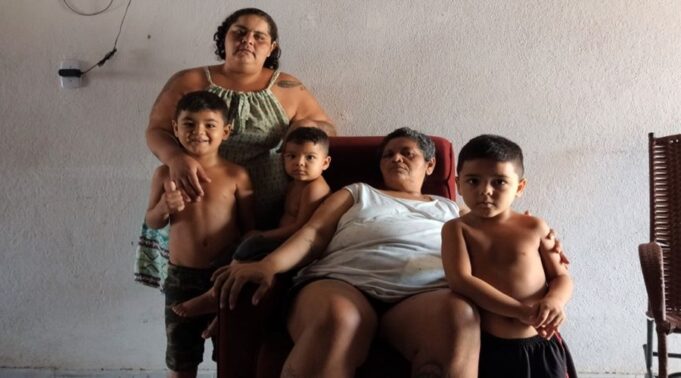 Na casa estão morando Francisca Núbia, sua irmã Renata Fernanda, de 30 anos, e sua sobrinha Francisca Amanda dos Santos, de 23 anos. Os meninos têm 6, 4 e 2 anos e são filhos de Amanda, mas o pai abandonou as crianças e foi movida uma ação judicial em busca de pensão para suprir as necessidades básicas dos garotinhos.
