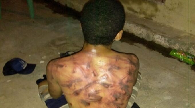 Pessoas ouvidas pelo Blog do Aryel Aquino dizem acreditar que o homem tenha sido agredido com chicote e fios. A região mais atingida foi às costas.