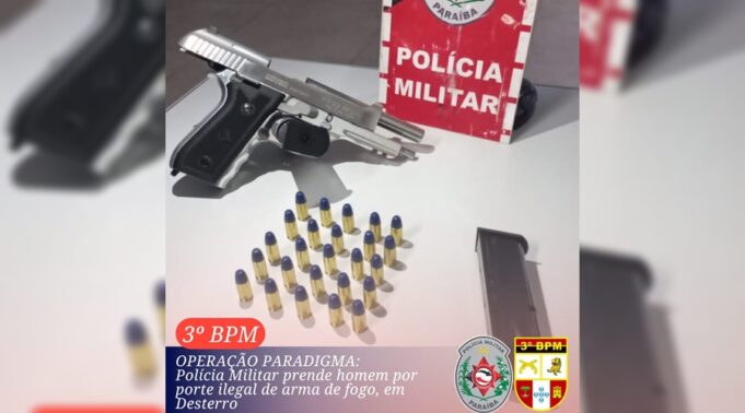 Policiais Militares da 4ª Cia/3° BPM, prenderam um homem na noite desta sexta-feira, (06), por porte ilegal de arma de fogo no município de Desterro, na Região Metropolitana de Patos, durante a Operação Paradigma.